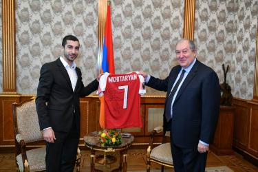 Մխիթարյանն անվանական մարզաշապիկ է նվիրել Հայաստանի նախագահին (ՖՈՏՈ)