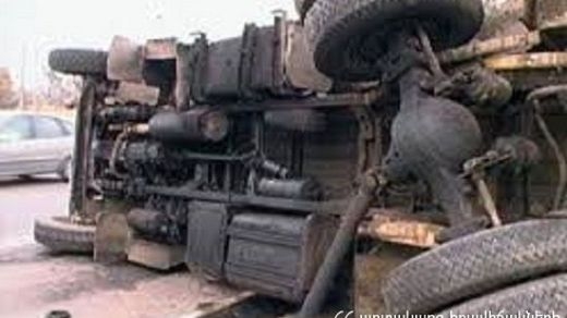 Բեռնատար ավտոմեքենան դուրս է եկել ճանապարհի երթևեկելի հատվածից և կողաշրջվել