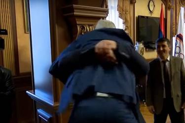 Ծառուկյանի հետ գրկախառվելու վտանգները. աշխարհահռչակ դերասանի մեջքը բռնվում է (տեսանյութ)